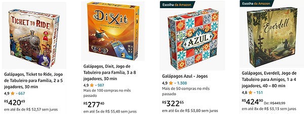 Veja, os jogos de tabuleiro custam em média R$ 350,00 e ao comprar online, você pode esperar de uma a duas semanas para receber.